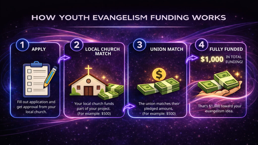 ***Funds are intended to provide financial support for senior youth and young adults to implement evangelism ideas and projects